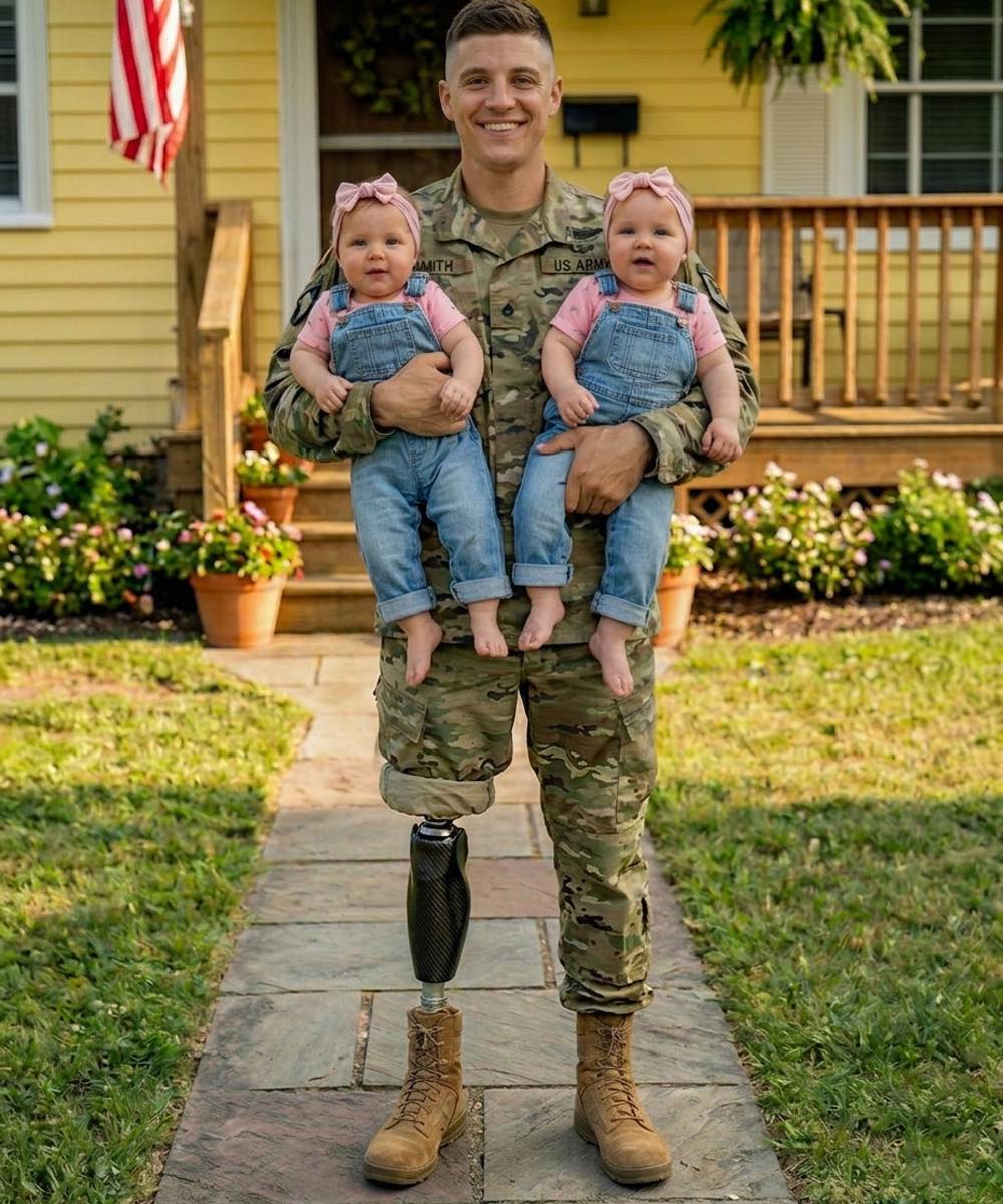 I returned from service with a prosthetic leg I hadn’t told my wife about, along with gifts for her and our newborn daughters. Instead of a reunion, I found my babies crying and a note saying my wife had left us for a better life. Three years later, I stood at her door again. This time, on my terms.