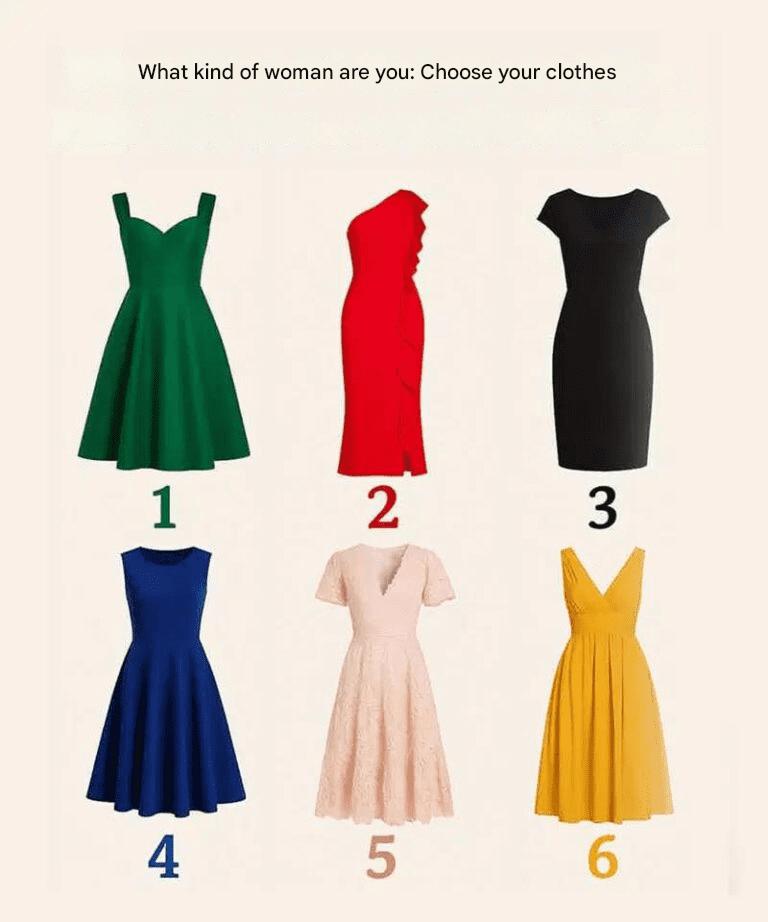 Fashion is not just about fabrics and colors – it’s also a reflection of your personality, confidence, and inner energy. The clothes you naturally gravitate towards say a lot about who you are, how you approach life, and the aura you carry. Take a moment to look at the six outfits pictured and choose the one you’d most like to wear.